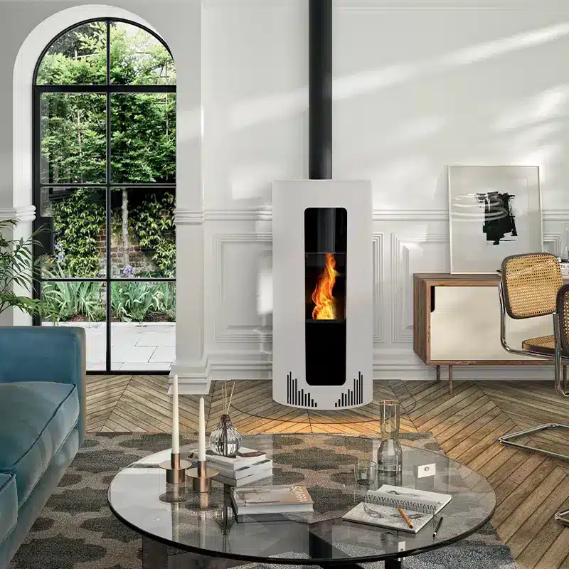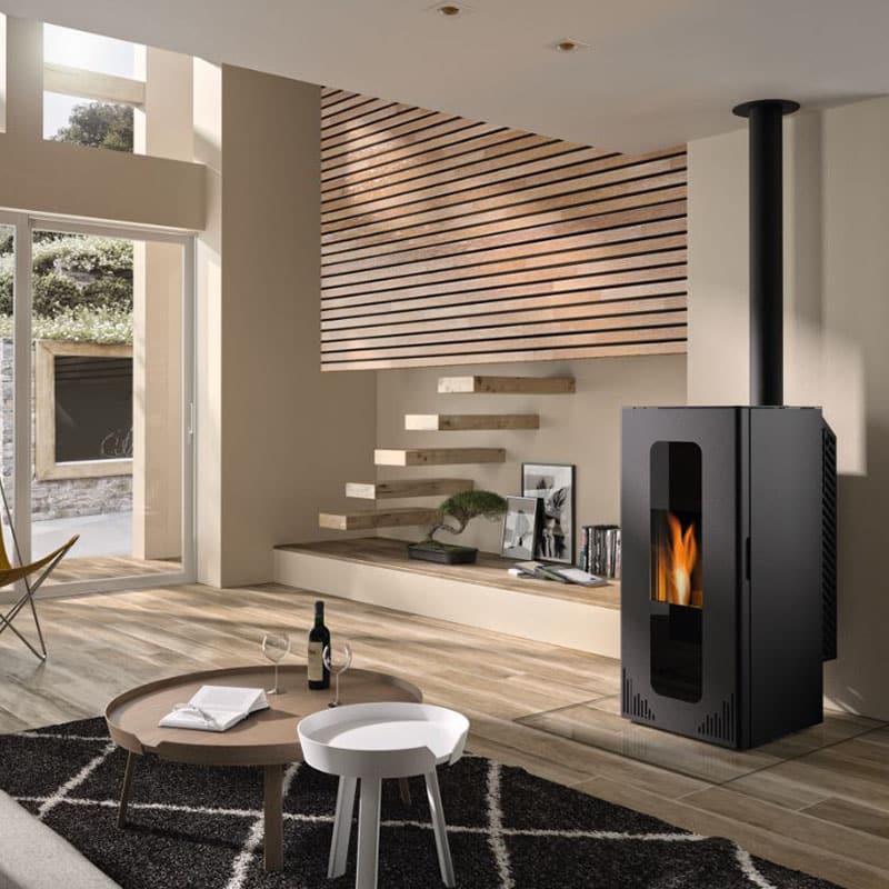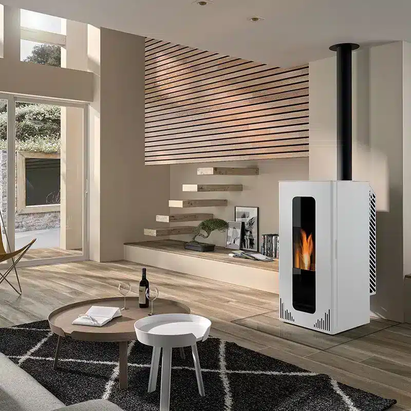 Installation de cheminées contemporaines, de poêles à bois ou à granulés.